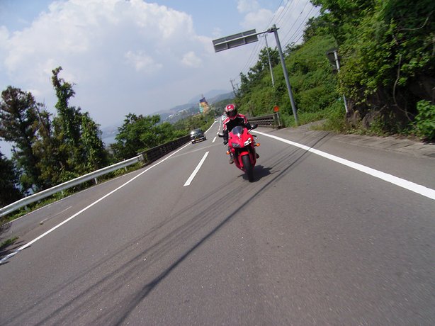途中、いい感じにコーナが連続する所でちょっとペースを上げて走ってたら軽自動車に詰まってしまい、あ~ぁ、と思ってたら白バイとすれ違い。